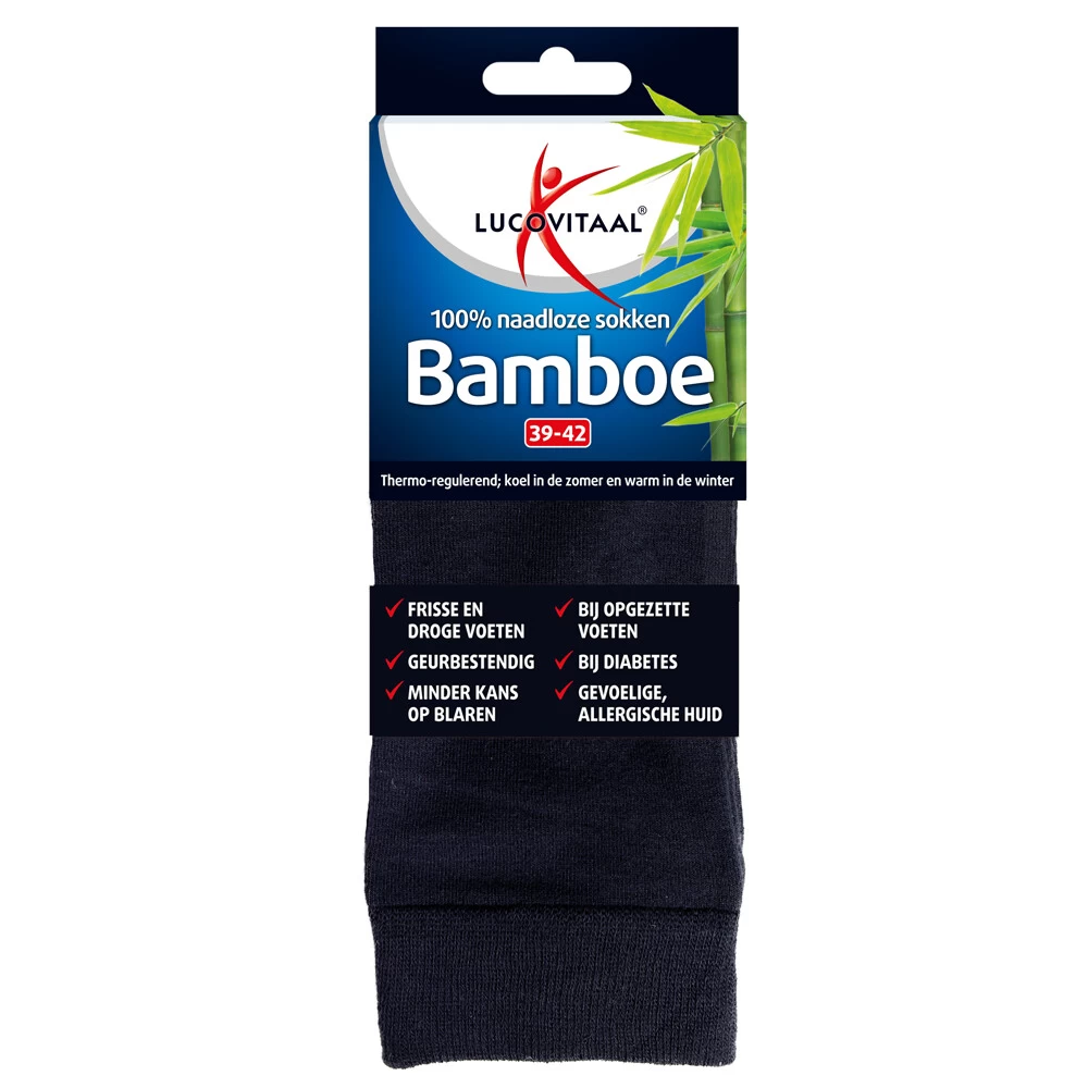 Lucovitaal Bamboe SokkenDe Bamboe lange sokken van Lucovitaal dragen koel in de zomer en warm in de winter. De zachte sokken zijn gemaakt van Bambolux. Bambolux bevat microgaatjes waardoor zweet 4 x sneller wordt geabsorbeerd. Daarnaast verdampt en voert de sok vocht af van de huid en houdt het de voeten fris en droog. Deze bijzondere sokken zijn hypoallergeen en anti-microbieel waardoor ze zeer geschikt zijn bij diabetes, opgezette en gevoelige voeten.Alle eigenschappen op een rijtjeThermo-regu
