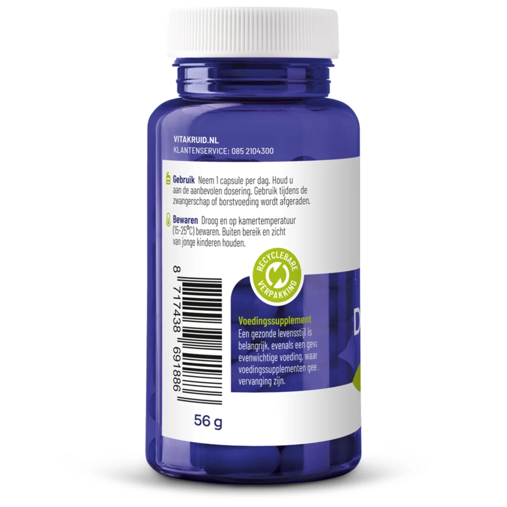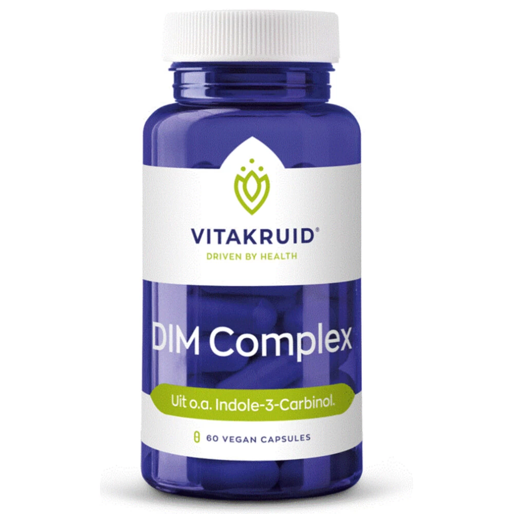 Vitakruid DIM ComplexVitakruid DIM Complex is een voedingssupplement met maar liefst 400 mg Indole-3-Carbinol (I3C) per capsule, deze stof is van nature te vinden in kruisbloemige groenten. Dit voedingssupplement draagt bij tot een normale hormoonhuishouding* en bevat de dagelijkse dosering die nodig is voor het gewenste effect. I3C is de eerste voorloperstof van Diindolylmethaan, dit wordt ook wel DIM genoemd. Dit omzettingsproces gebeurt met behulp van de stof sulforafaan, deze stof is ook rij